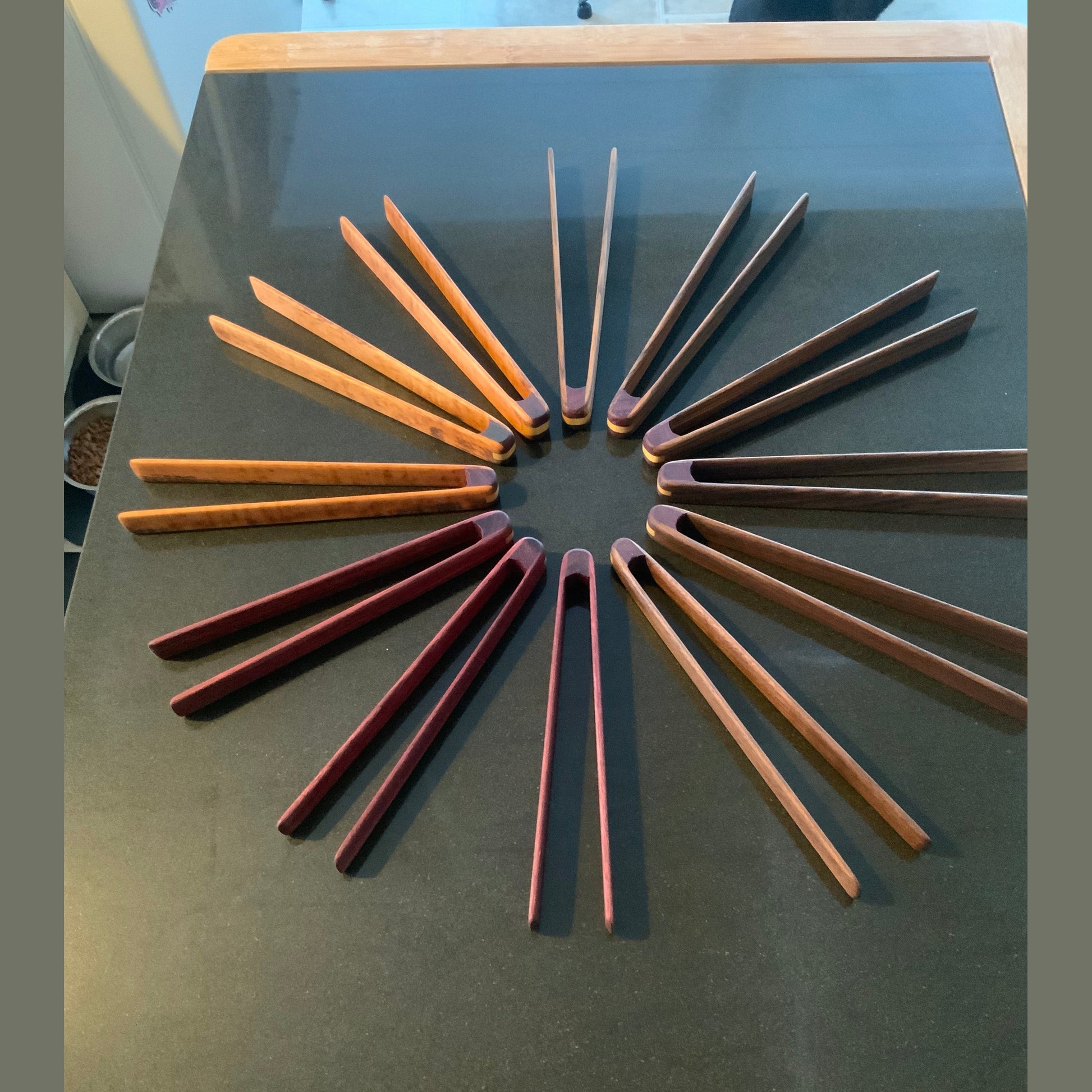 Experience luxury in your everyday routine with our Toast Tongs. Made from select hardwoods, each tong is accented with gorgeous Purple Heart and Yellow Heart, adding a touch of elegance to your kitchen. Safely remove hot toast from the toaster or serve fresh bread with ease.